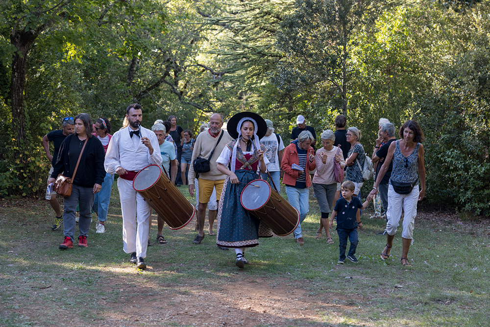 Sur fond de fête de village et dans un décor naturel d’exception où se côtoient arbres centenaires, Cathédrale souterraine et horizons alpins, le public a pu déambuler d’un groupe d’interprètes à l’autre, pour saisir, au gré du hasard, des bribes de textes clamés qui ont eu, pour chacun, une résonance unique.