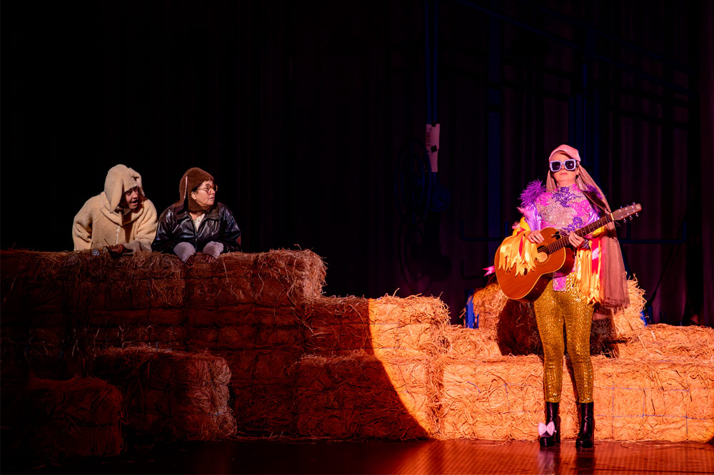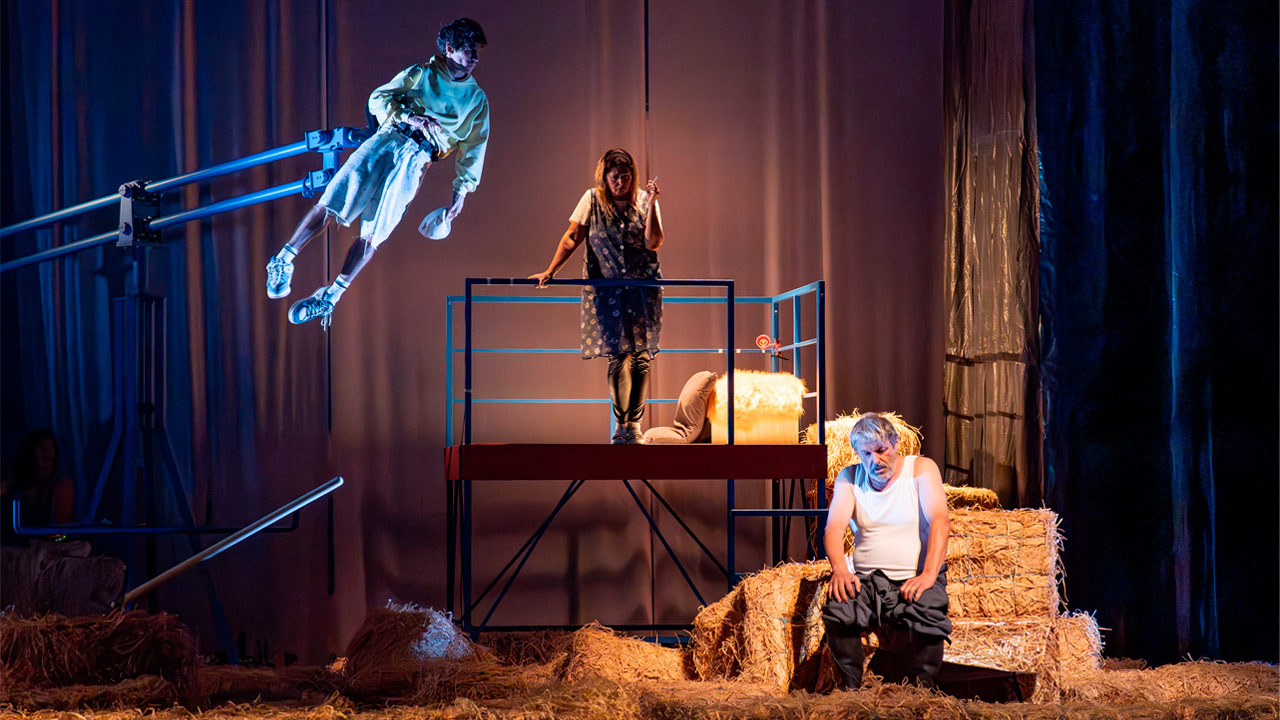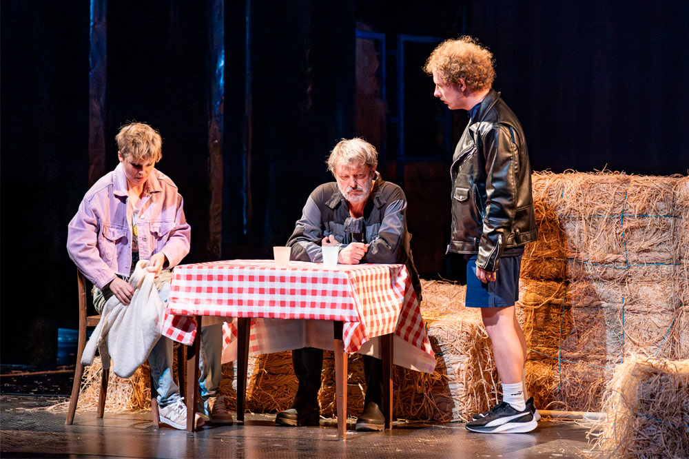 Ce qui m’intéresse avec ce drame empli de farce, c’est d’inviter la campagne à se faire une place dans le théâtre, chargée de problématiques qui enjambent l’aspect social ou environnemental strictement rural, en mettant en scène un monde paysan entraîné dans les soubresauts du siècle, pris dans des contradictions voisines du monde citadin, mais avec l’âpreté et la solitude propre au monde paysan, au rapport trouble à la terre, à l’animal, à la mort. Pas de campagne enchanteresse ou nostalgique, ni de méchant agriculteur industriel et encore moins de bon éleveur bio. Juste un père endeuillé, qui a voté pour Marine Le Pen aux dernières élections et qu’on voit doucement, au détour de sa tristesse, tomber amoureux d’un jeune arabe un peu paumé.
