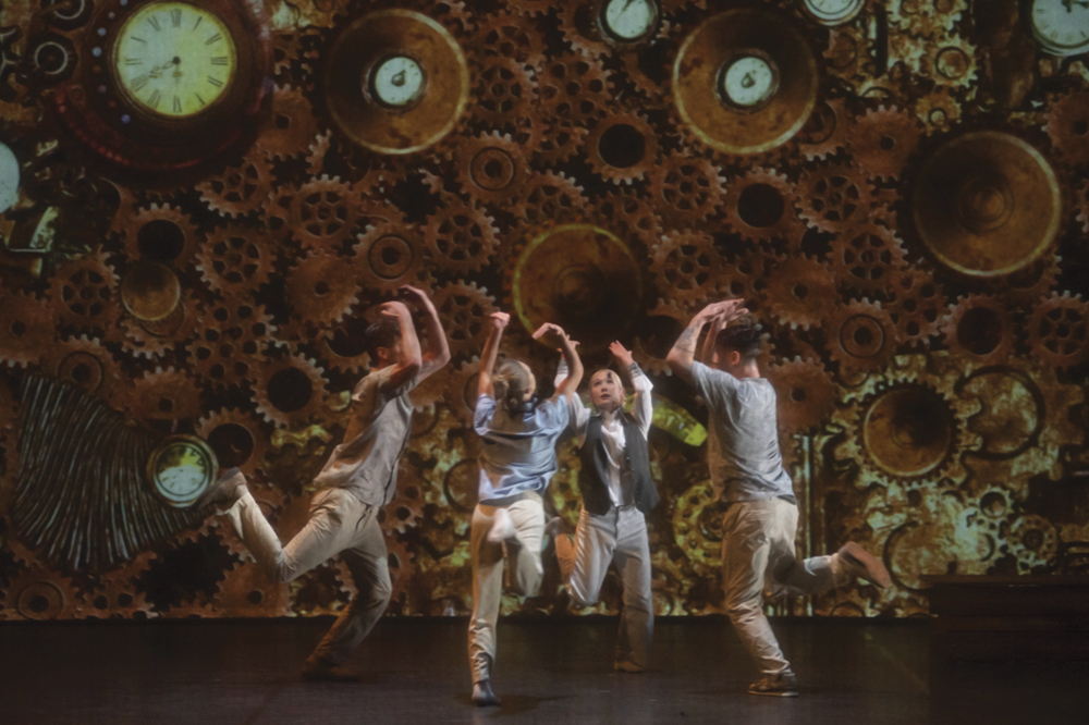 Toutes et tous dansent au milieu de superbes illustrations et projections au rythme de la musique. Leurs figures amples se déploient à l’infini. Des métamorphoses visuelles nous surprennent. Et de cet instant délicat se révèle l’insouciance de notre enfance.