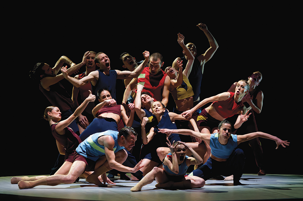 Dans Rhapsody in blue de Iratxe Ansa et Igor Bacovich, quinze danseur·euses nous séduisent par leurs figures dynamiques et joyeuses, faites notamment de mouvements ondulés et synchronisés.