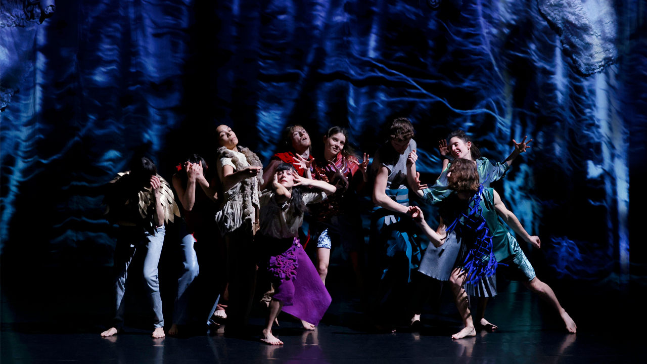 Sur un « plateau-forêt » à la végétation lumineuse et entrainés par la composition musicale originale aux chants et pulsations battantes, les mouvements perpétuels des 10 danseurs se déploient à un tissage de gestes permettant de faire liens entre des différents mondes, sensibles et rationnels, poétiques et signifiants. Devenus rituels chorégraphiques, les motifs évolutifs émergent et s’évanouissent, au fur et à mesure de la pièce, inscrivant les danses dans la mémoire des corps, comme le cycle des saisons laisse sur l’arbre les signes du passage du temps. L’émergence et la répétition de ces gestes qui s’entrelacent et se mêlent, donnent ainsi naissance à un folklore singulier : une fabrication collective unique, portée par une pratique scénique partagée, travaillant un certain corps, habité et façonné par ces mouvements incessants. Ce développement intense et complexe permet d’activer une empathie cinétique entre les corps des interprètes et le public.